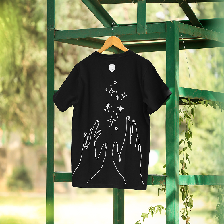 You have the stars at your fingertips. Connect to your cosmic roots with this beautiful, line-drawn design, printed onto our soft and wearable graphic tee.