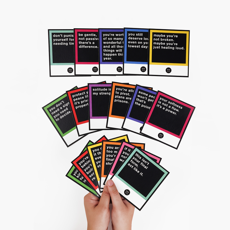 Pull a card and receive a tiny message, full of good juju! This 30-card deck is perfect for days when you just need a tiny boost.